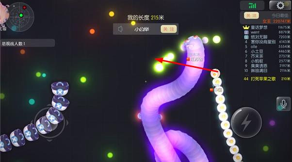 1、经典玩法革新:重塑“贪吃蛇”玩法,吃光点长身体、围困敌人夺能量,比拼成长速度与策略,体验经典升级的对战乐趣。