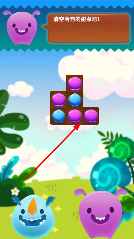 1、两点与方形消除操作:通过点击连接两个相同甜点完成两点消除,或连接成方形的四个相同甜点触发方形消除,消除后甜点会被小怪兽吃掉,操作简单易上手,策略性规划。