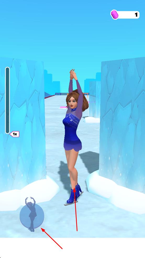 1、操控滑冰角色在冰场场景中移动,角色可前后左右移动,这是开启游戏的关键操作。