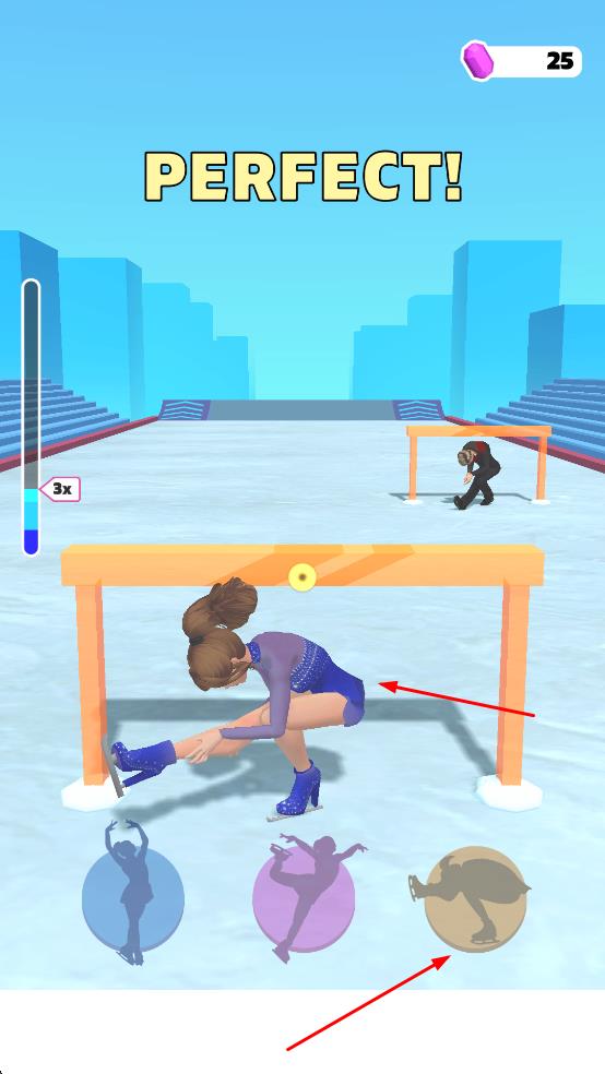 1、三种姿势灵活运用:提供三种滑冰姿势,玩家需灵活切换以应对不同关卡场景,从快速滑行到高难度转身,每种姿势都有其适用场景,合理运用能更顺利完成华丽动作。