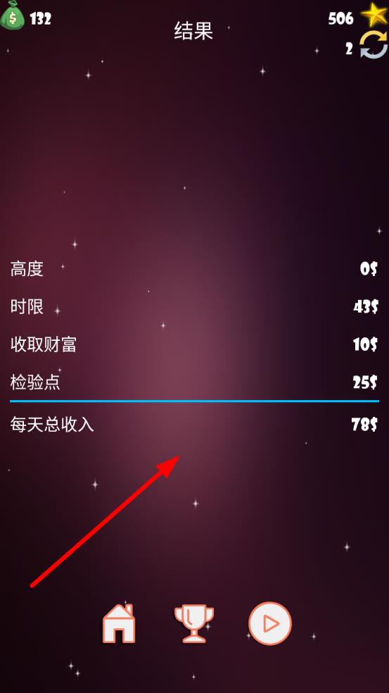 3、火箭达到一定高度或完成阶段性目标后,结算获得的奖励,用金币升级火箭部件,为下一次飞向火星做准备。