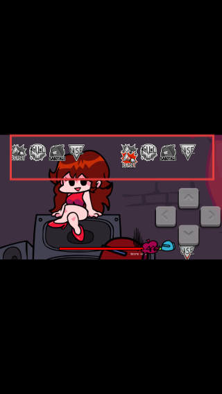 3、在游戏场景中,利用红色方框内的虚拟按钮控制角色的动作,跟随音乐的节奏,完成音乐节奏任务,获取游戏得分和奖励。