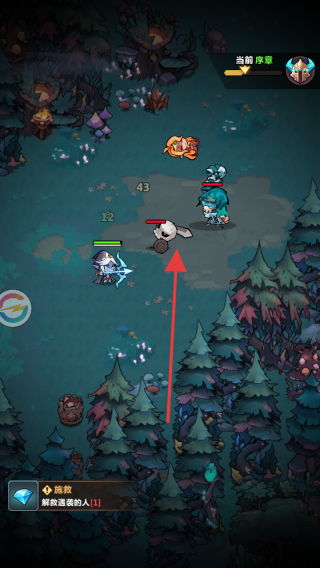 3、操控角色向红色箭头所指的敌人方向移动,释放技能,对敌人造成伤害,击败敌人获取胜利,完成游戏任务,获取游戏得分和奖励。