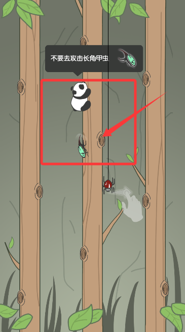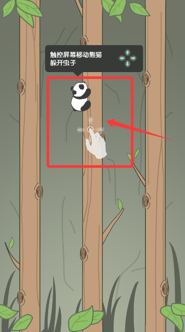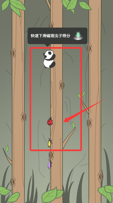 2、通过左右滑动屏幕指挥熊猫移动,灵巧避开树枝间爬行的各类昆虫。