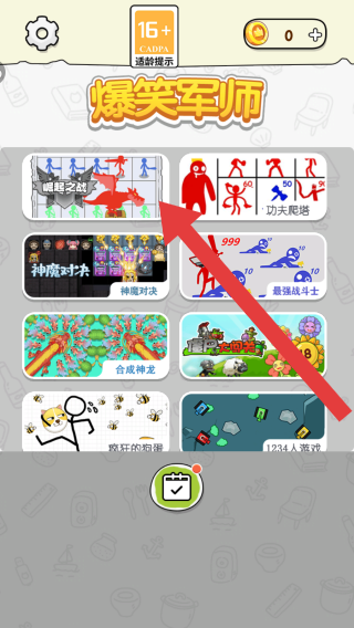 1、金币显示、功能按钮齿轮设置、加号等,呈现多款小游戏的推荐,可点击进入对应游戏体验。