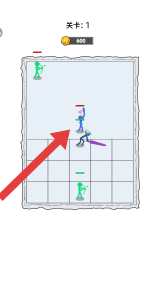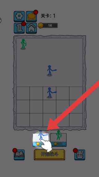2、呈现关卡:1,有不同颜色火柴人兵种,可选择兵种部署,点击开始战斗按钮进行对战,属于火柴人题材的塔防对战闯关。