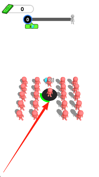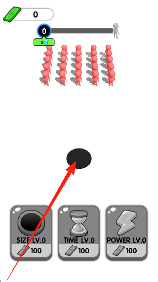 1、进入游戏场景,学习创造黑洞的方法,熟悉黑洞的移动操作,观察周围的士兵和物体,准备开始吸收。