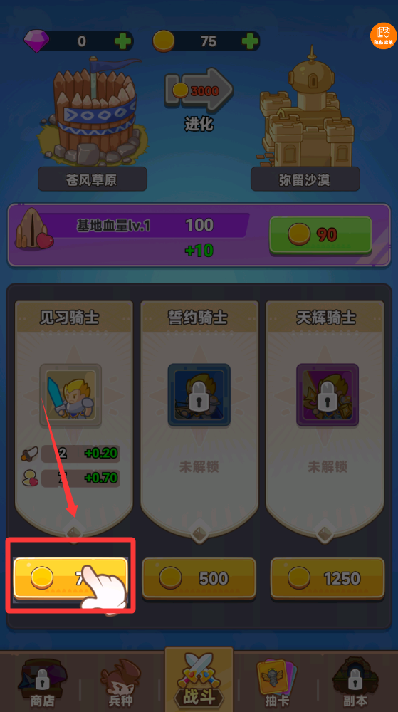 2、按一下购买按键,提升一下小兵的实力。