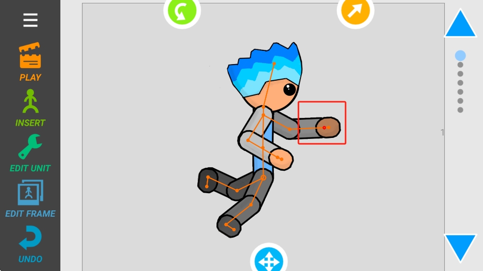 1、点击火柴人手臂等关节,拖动调整位置,设置动作姿态,利用EDIT UNIT等工具,编辑单个肢体单元。