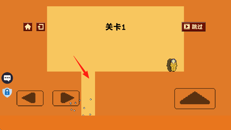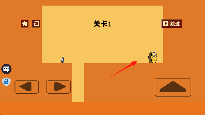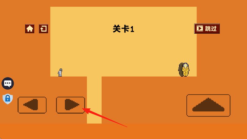 1、进入游戏开始点击左侧箭头按钮,控制像素人向右移动,靠近黄色区域缺口。