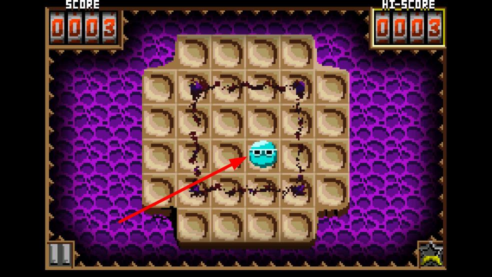 2、经典像素画面:采用经典像素风格打造画面,小怪物形象呆萌可爱,方格场景和降落的方框线条简洁,复古的视觉风格既怀旧又独特,简单的画面中聚焦于躲避操作本身。