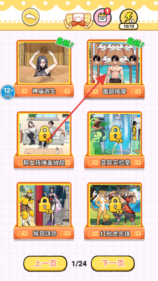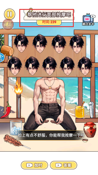 3、在游戏场景中,根据红色方框内的提示,帮助角色进行面部按摩,完成游戏任务,获取游戏得分和奖励。