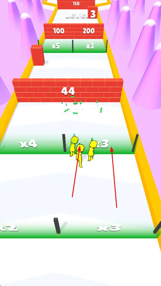 1、收集人员扩大队伍:玩家在跑酷过程中收集场景中的人员,让队伍不断壮大,人数越多战斗力越强,收集过程中需注意避开陷阱,确保队伍规模稳定增长。