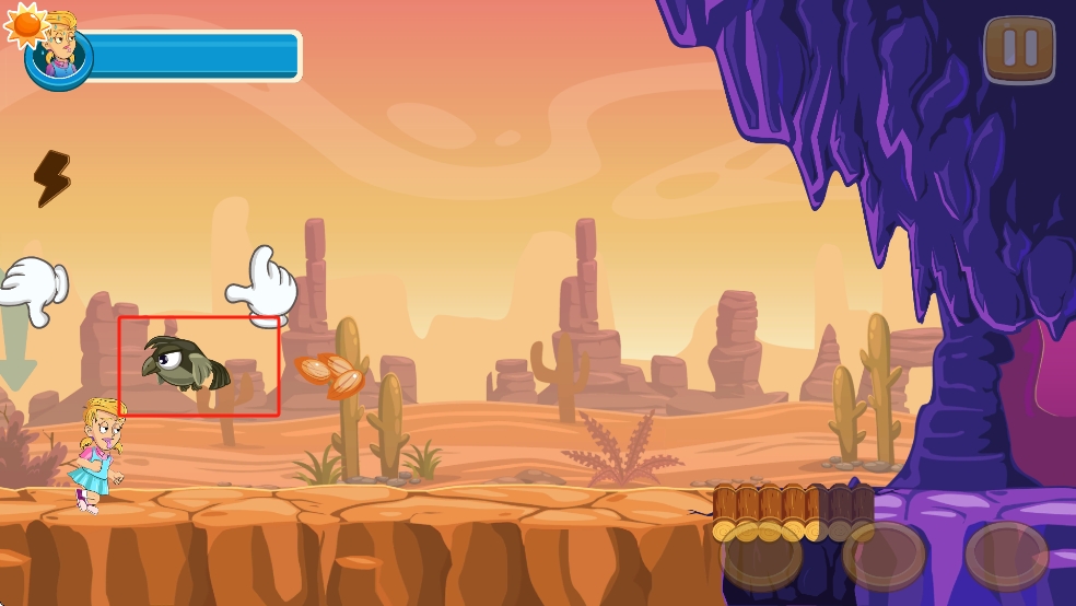 2、途中出现黑色怪鸟,快速点击跳跃,避开撞击,同时收集路上道具,维持角色生命值,继续跑酷。