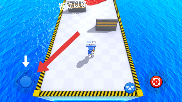 1、根据拖动以移动进行操作,角色、场景水上平台、障碍物、左下角移动控制按钮、右下角技能动作按钮等。