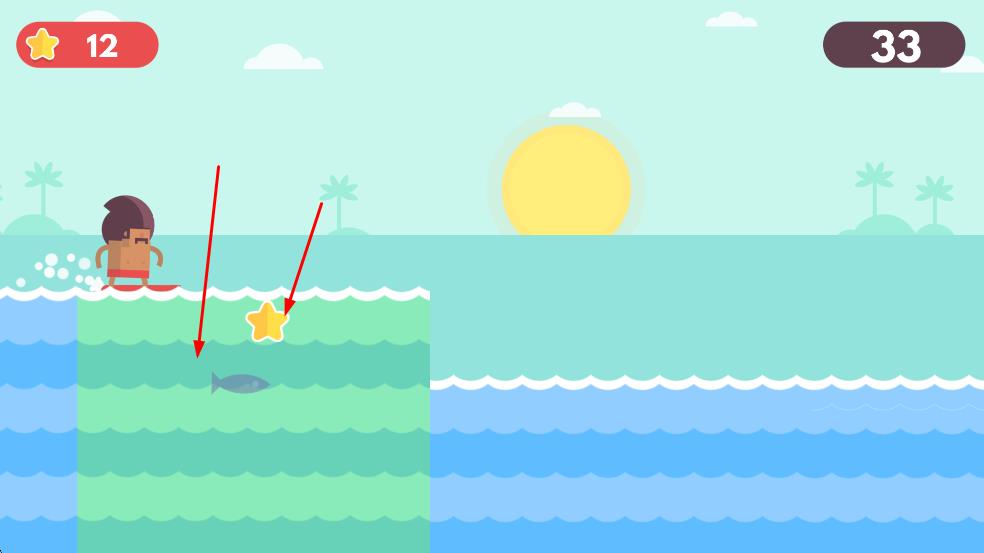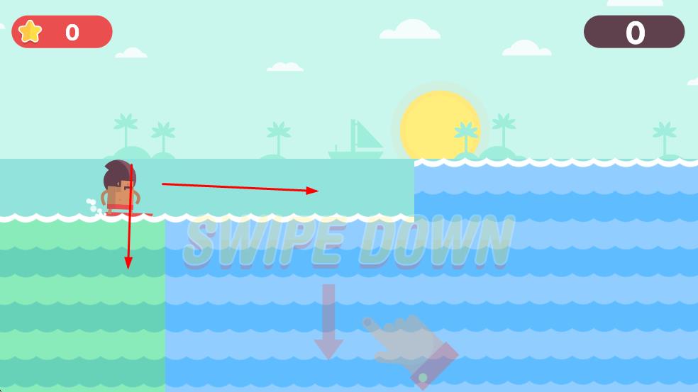 1、操控冲浪角色在海面场景中移动,角色可前后左右移动,这是开启游戏的关键操作。