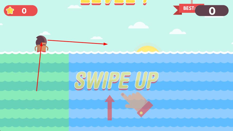 3、会遇到不同的海面布局和道具,继续操控角色滑动屏幕,收集星星,向关卡终点前进。
