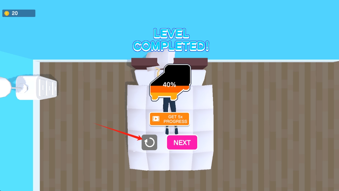 3、若想快速提升进度,可选择观看广告,获取5倍进度加成,加速游戏进程,点击重开游戏。