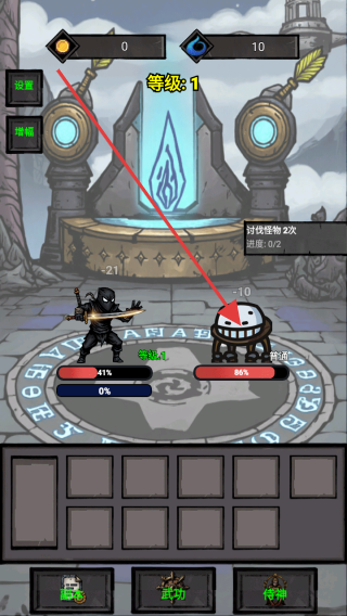 2、根据红色箭头所指的方向,操控角色攻击敌人,完成游戏任务,获取游戏得分和奖励。