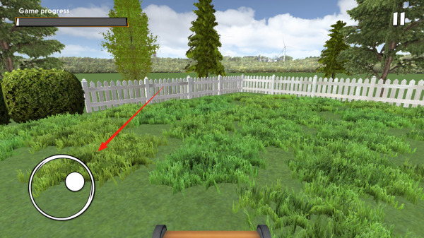 3、操控割草机移动对准草坪区域,推动割草机前进修剪杂草,依据进度条推进游戏,体验模拟园艺操作玩法。