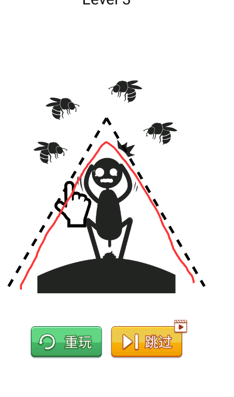 2、根据提示画一个三角形保护它不要被蜜蜂钉,因为它在拉屎。