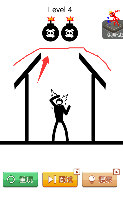 3、如果不小心画错了就点击红色框框的重玩继续。