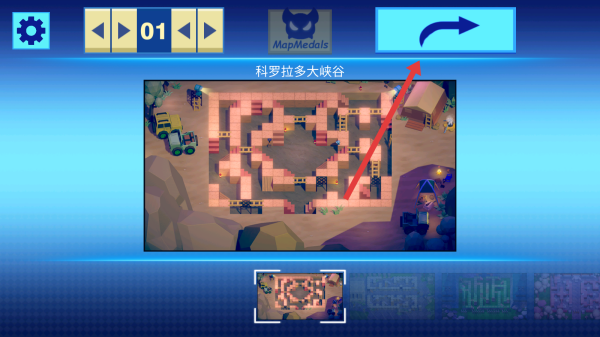 2、在关卡选择界面,通过选择科罗拉多大峡谷关卡,点击右上角按钮进入该地图,准备进行探险挑战。