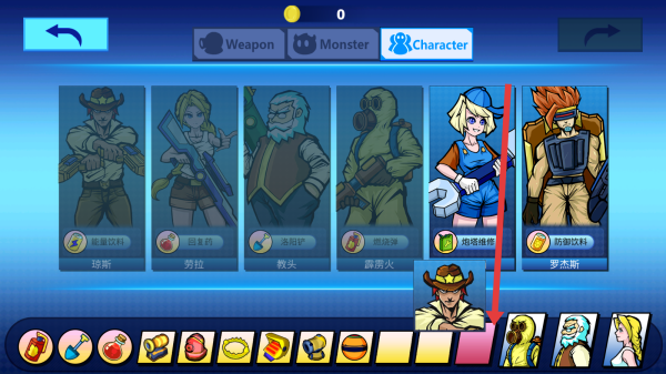 3、进入角色选择界面中,向下拖拽挑选合适角色如罗杰斯等,搭配武器,为峡谷冒险做准备。