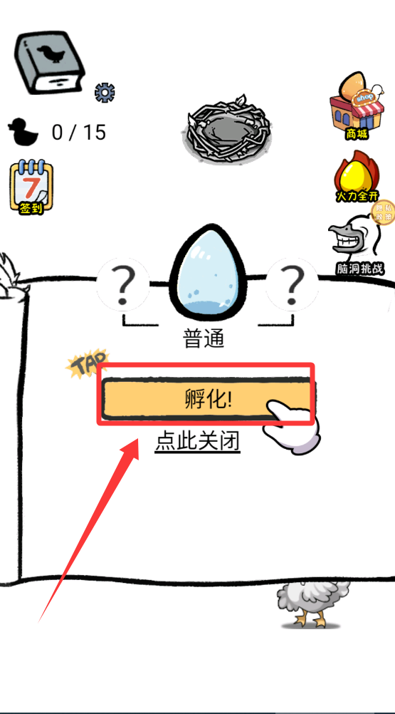 4、然后按一下孵化按钮疯狂点击它就裂开。
