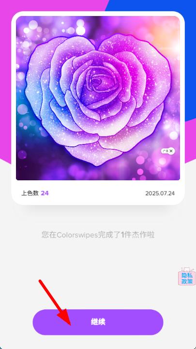 1、进入游戏后,从画廊中挑选一幅心仪的线稿图片,查看图片上的数字标识和对应的颜色面板,了解数字与颜色的匹配规则。
