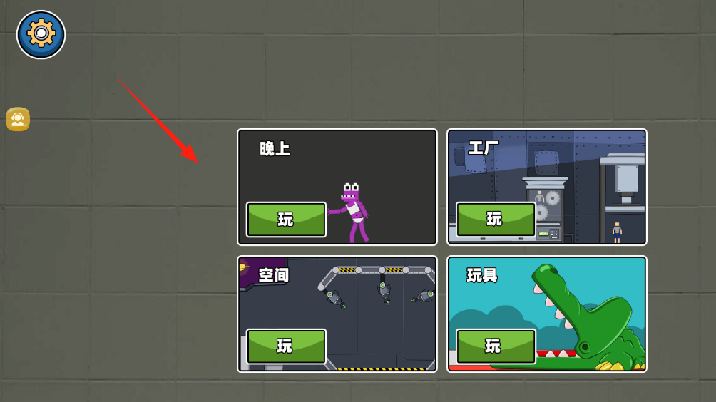 1、主界面选晚上关卡紫色角色,点击玩,进入场景,左侧选人物3/5、武器剑、枪等,右侧配技能。
