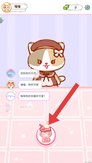 1、点击制作按钮用于制作甜品,画面含互动留言、资源显示,属于开店制作、互动经营的场景,核心是通过制作甜品开展经营。