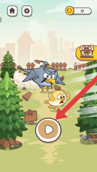 1、显示关卡1,有播放按钮可开始游戏,画面含小鸟、老鹰、商店等元素,核心玩法是保护小鸟躲避老鹰,属于闯关解谜类场景。