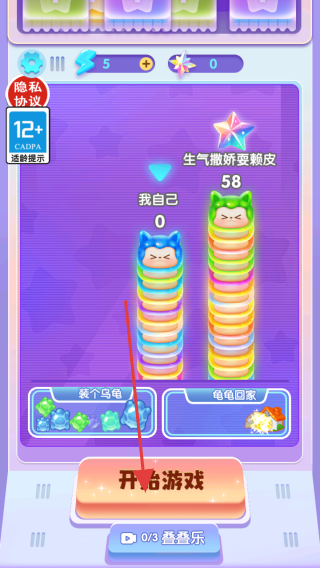 1、进入游戏界面,点击开始游戏按钮,开启游戏的冒险挑战,进入游戏的主场景。