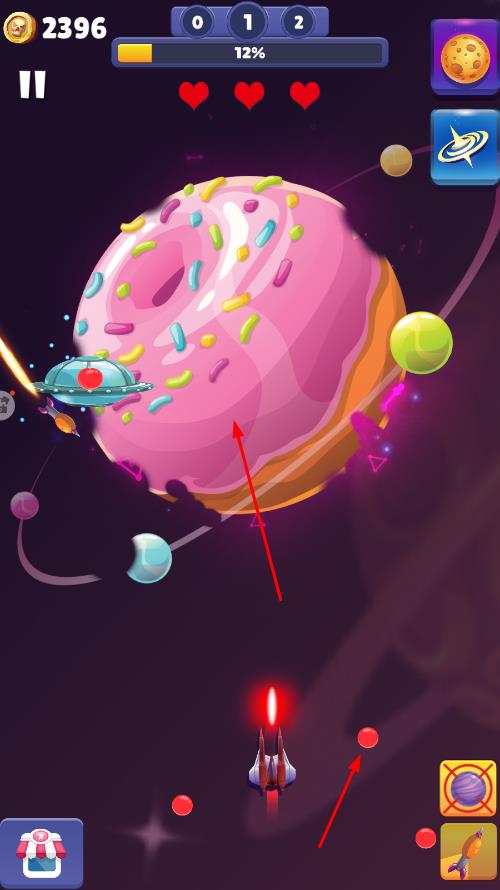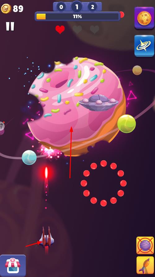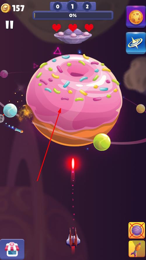2、通过点击屏幕下方的导弹发射区域,发射导弹,让导弹撞击星球,随着导弹的撞击,星球会逐渐被破坏。