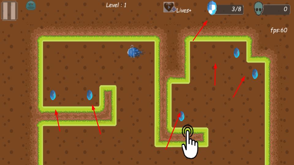 2、角色需要收集蓝色的蛋,同时注意上方的Lives+和收集进度,为完成关卡任务奠定基础。