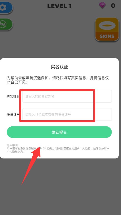 2、点击填写真实姓名和身份证号码。