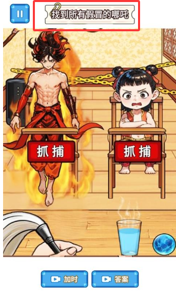 2、进入游戏后,找到所有假冒的哪吒即可过关。