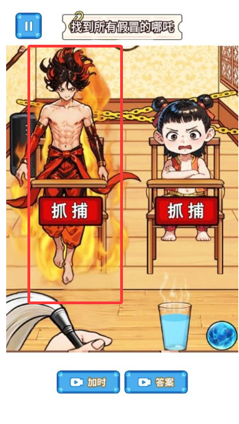 4、要是找不到哪吒,可以点击右下角答案找出哪吒。