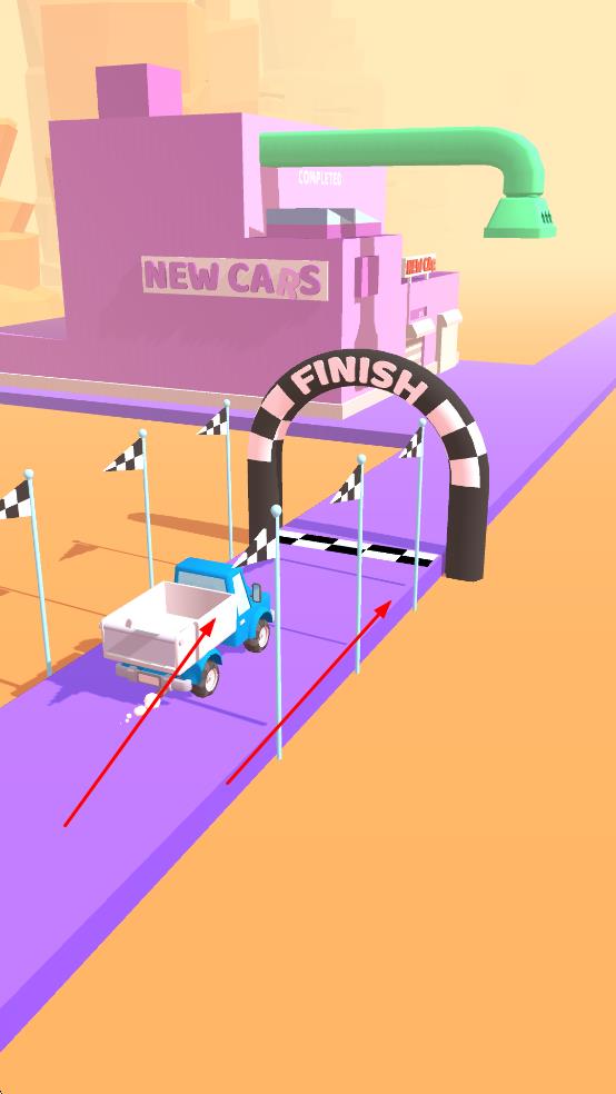 1、操控蓝色卡车在紫色的道路上行驶,可通过特定操作控制卡车的前进方向,沿着道路向目标方向移动。