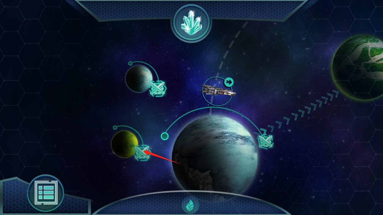 2、在星系地图界面,选择不同星球,进入战斗,收集资源,提升飞船战斗能力,点击选择关卡。