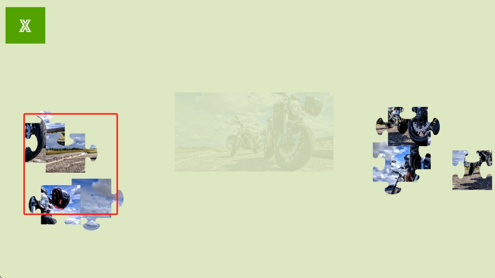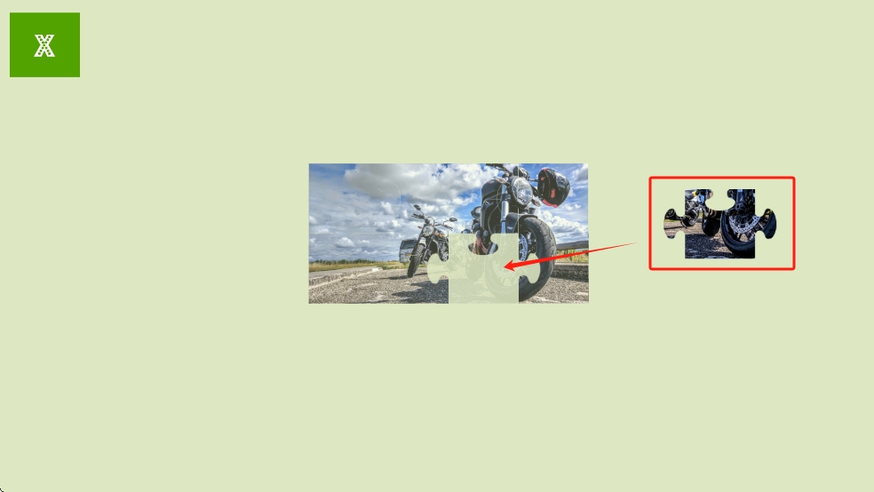 3、持续拼接剩余碎片,使所有拼图块嵌入正确位置,还原完整摩托车图片,达成YOU WIN的通关。