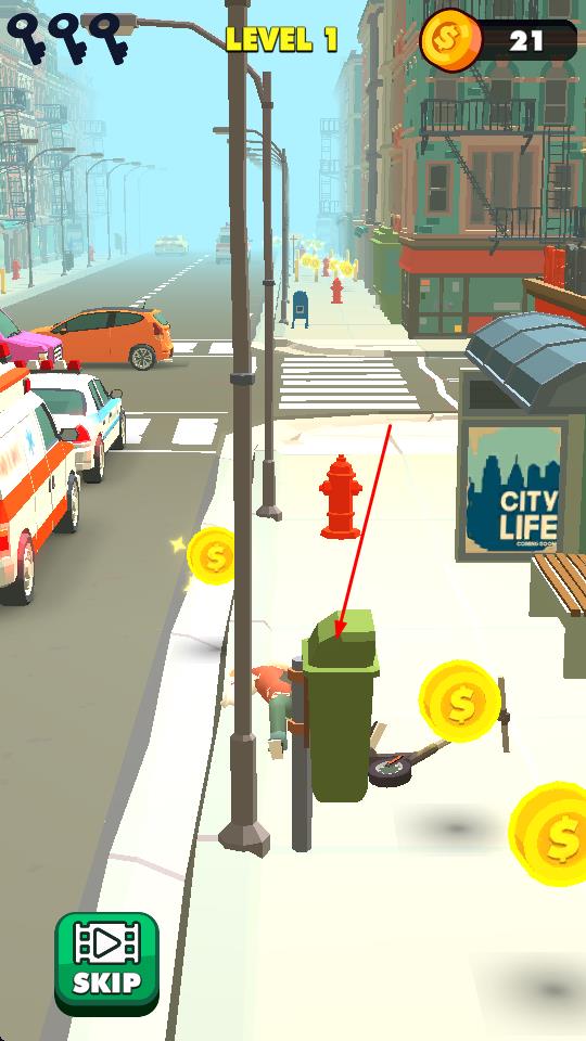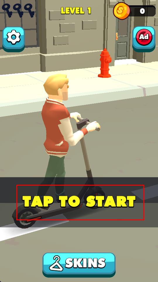 1、看到角色骑着滑板车站在街道起始点,点击 TAP TO START”按钮,这是启动滑板车、开启街道穿梭挑战的关键操作。