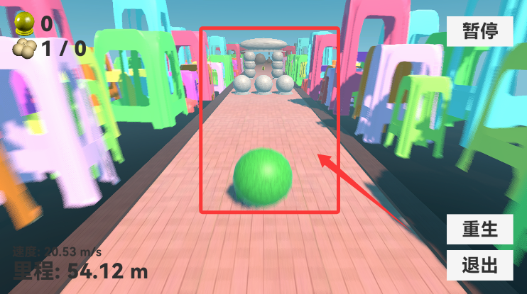 2、控制绿色圆球在缤纷道具搭建的赛道上,持续加速的滚动。