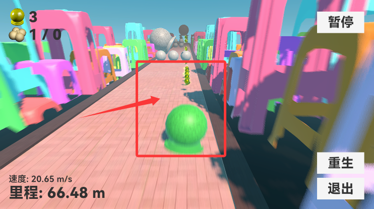 3、灵活闪避各类障碍物,收集加速道具可维持球体高速运转。