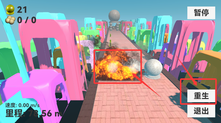 4、遭遇碰撞失败时,使用复活功能继续挑战,突破最佳奔跑距离。