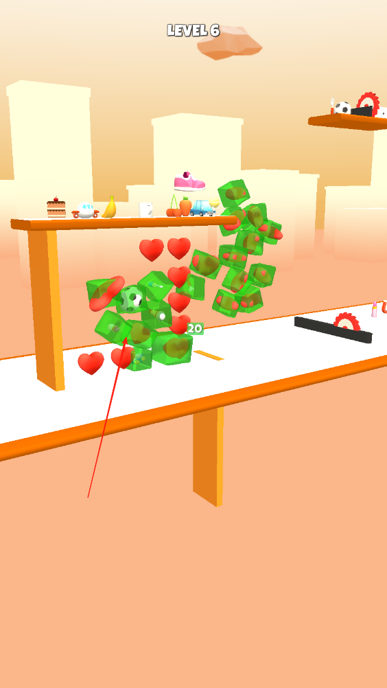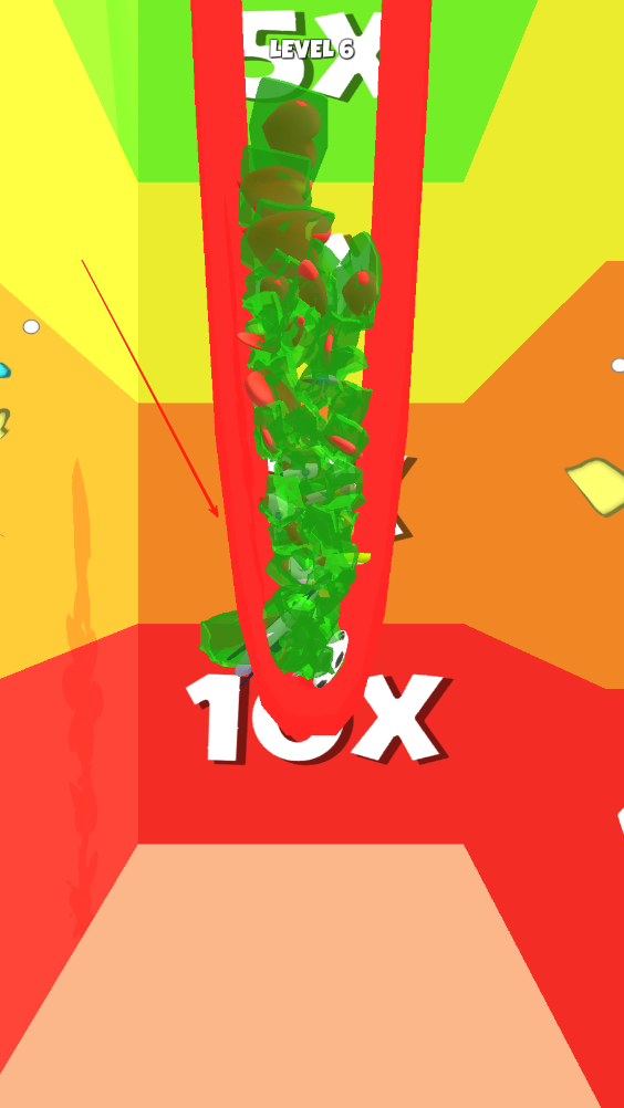 3、果冻里吸收的东西越多,重量也就越重,到达终点后跳进奖励区,重量越重坠落的位置越深,奖励翻倍越高。