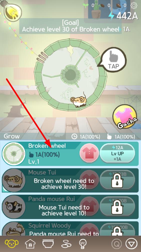1、进入游戏后,点击屏幕让跑轮转动,鼠鼠随之跑动发电,初始从基础鼠鼠伙伴开始,积累电量解锁新同伴。