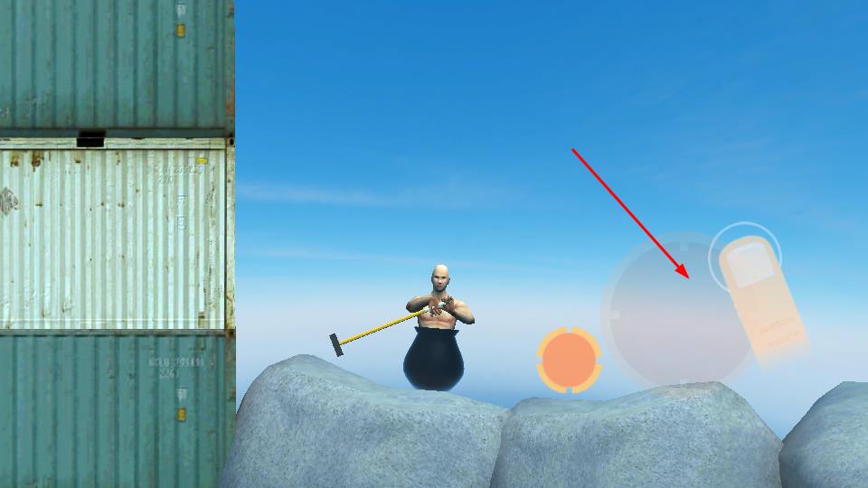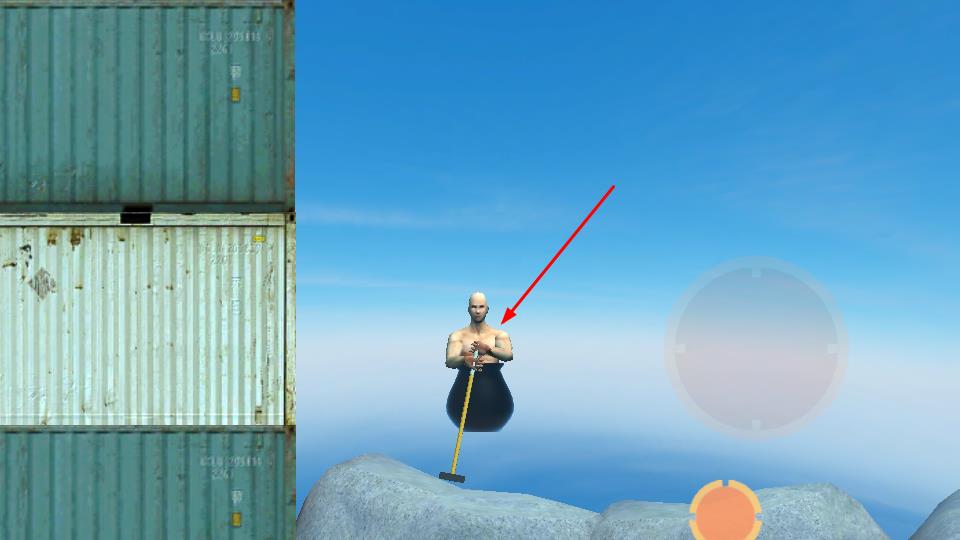 1、下载完成需要进入游戏界面,操控角色借助锤子发力,这是攀爬移动的关键,开启艰难的闯关之旅。