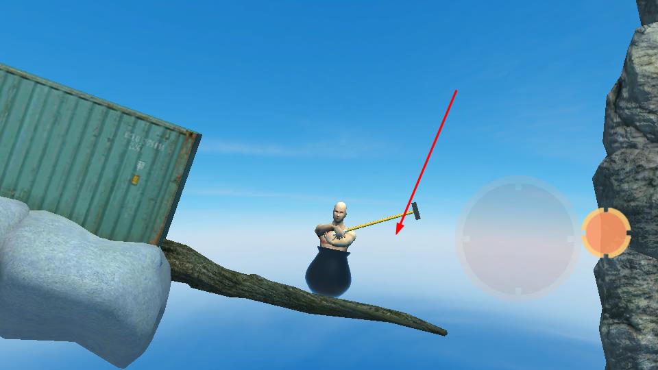 3、掌控锤子实现移动:唯一的行动方式是操纵锤子,利用其与地面的碰撞产生动力,实现摇摆、跳跃和攀爬,随着时间推移,逐渐摸索出操作技巧,登山路上走得更远。